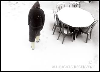 Este manto branco! Chegou de repente sem avisar, tapou buracos, cobriu casas e árvores, deu alegria ás crianças. Por mim morava nesta paisagem constantemente, presa sem dor nem rancor, sem lágrimas, sem amargura.. Paisagem esta que transmite grande paz, grande amor, grande descanso. Tudo aquilo que me falta. O amor estagnou, ficando acorrentado no tempo, a alegria encravou com as minhas próprias lágrimas. Lindo manto branco! Conseguirás tu tapar uma vida com buracos e poças? Conseguirás tu cobrir os desgostos e as desilusões?Não. Levanto-me da cadeira e continuo sempre em frente, vivendo esta rotina constante. A vida é assim.. QUE LINDO MANTO BRANCO. Apenas mais uma ilusão.